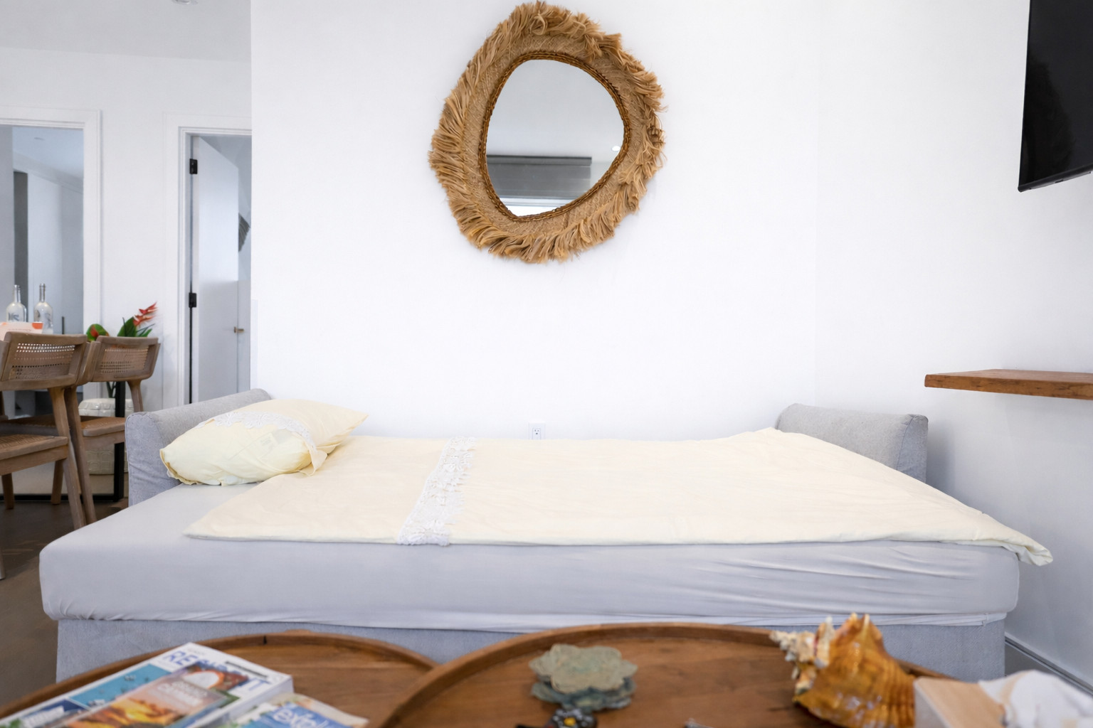This modern apartment has been designed in collaboration with a Spanish interior designer, blending Mediterranean elegance with Caribbean charm to create a space that feels both sophisticated and effortlessly relaxed.