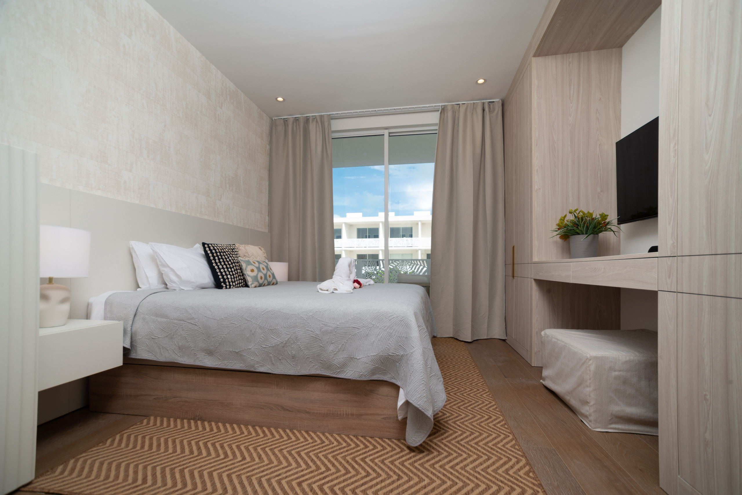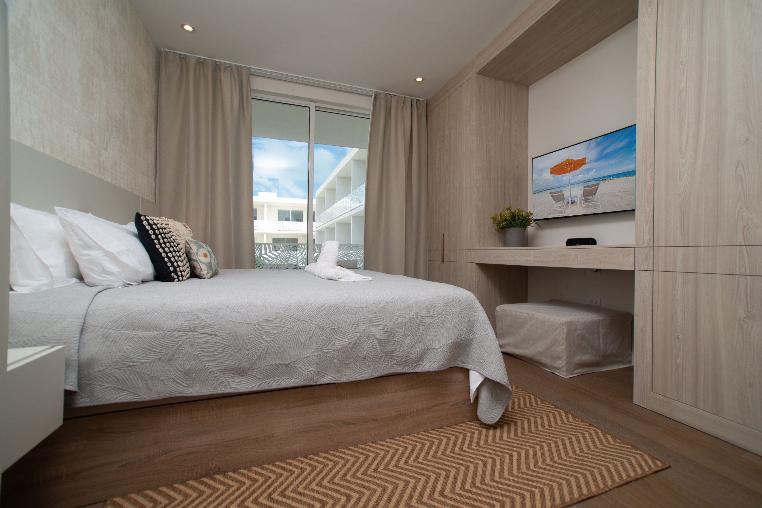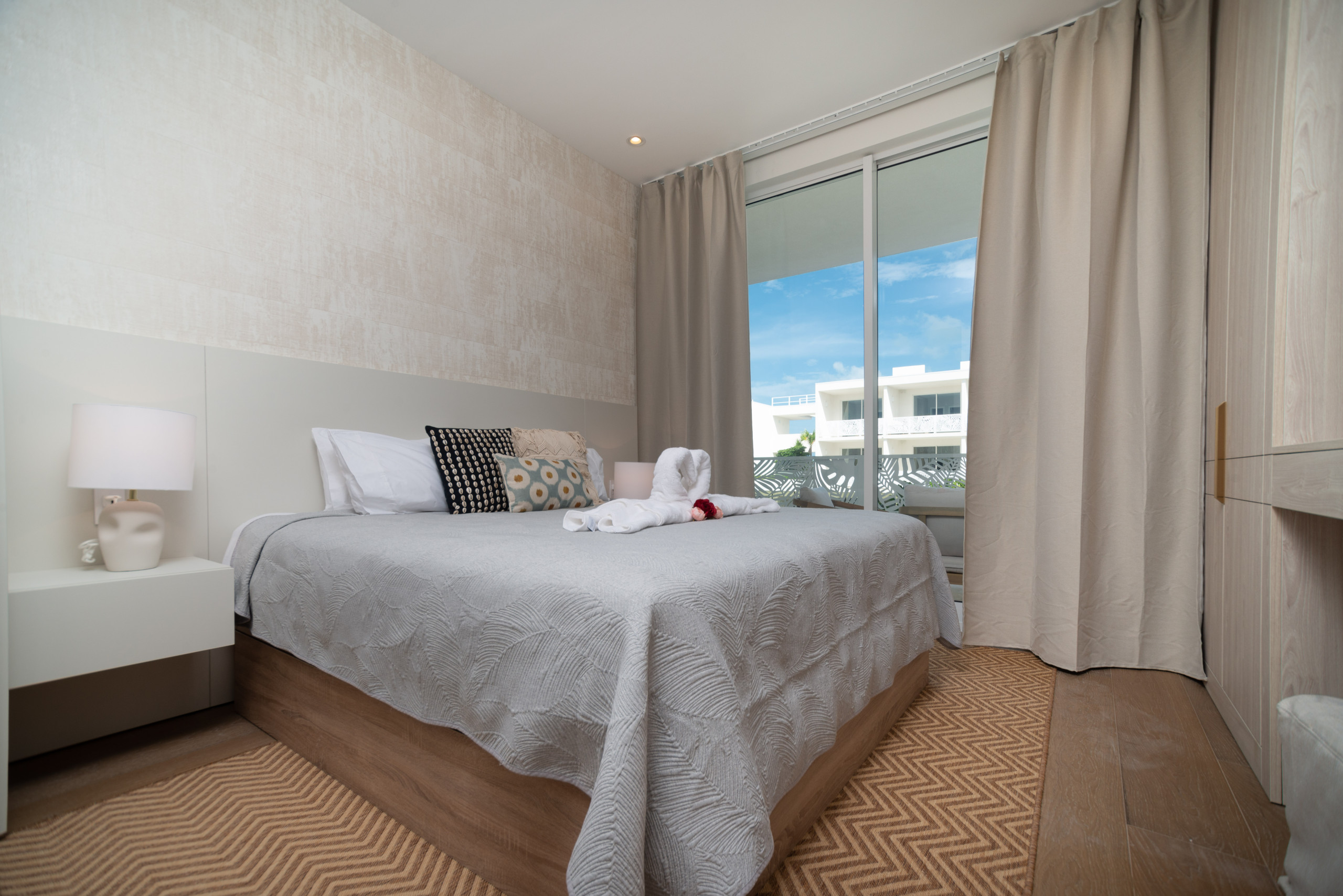 This modern apartment has been designed in collaboration with a Spanish interior designer, blending Mediterranean elegance with Caribbean charm to create a space that feels both sophisticated and effortlessly relaxed.