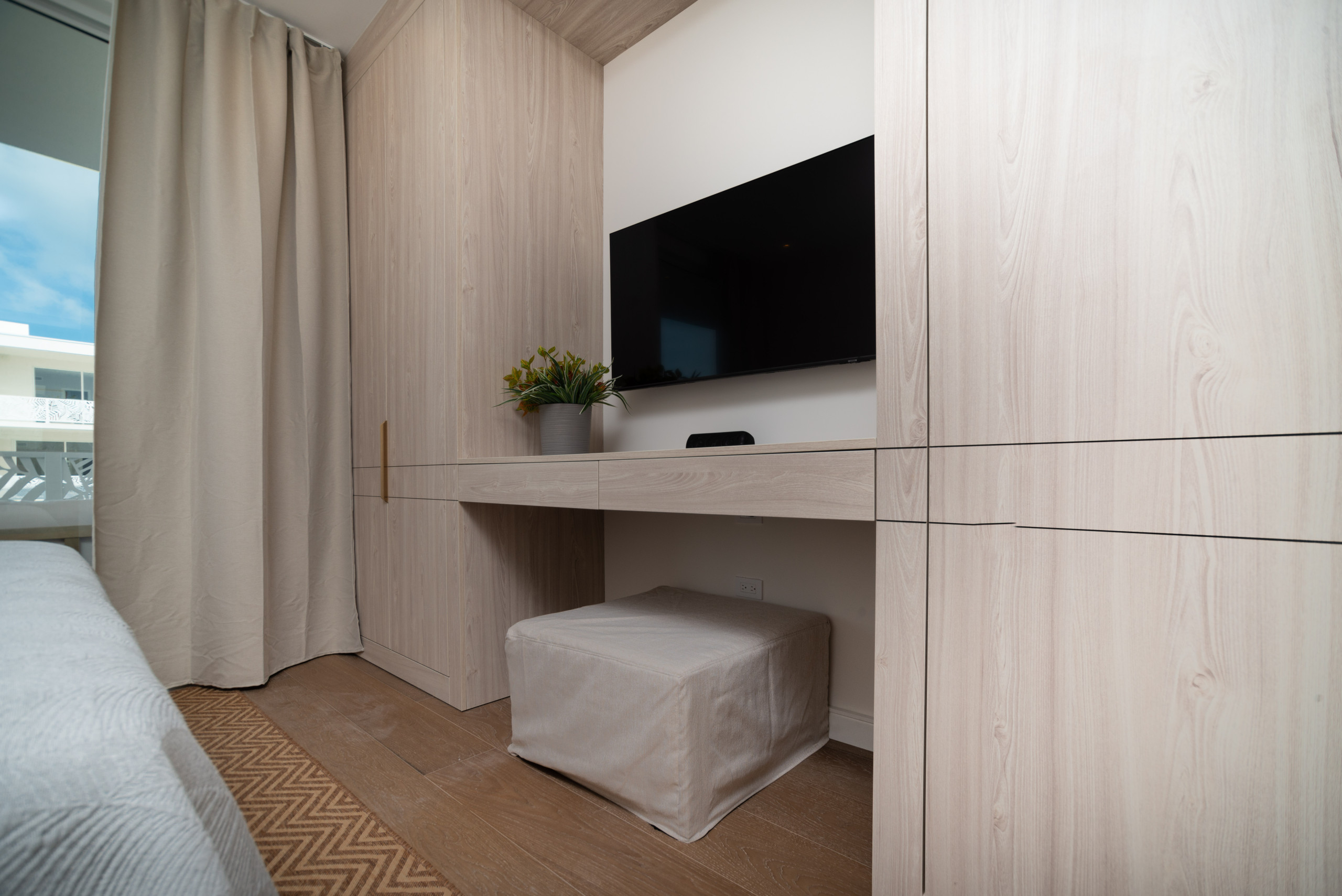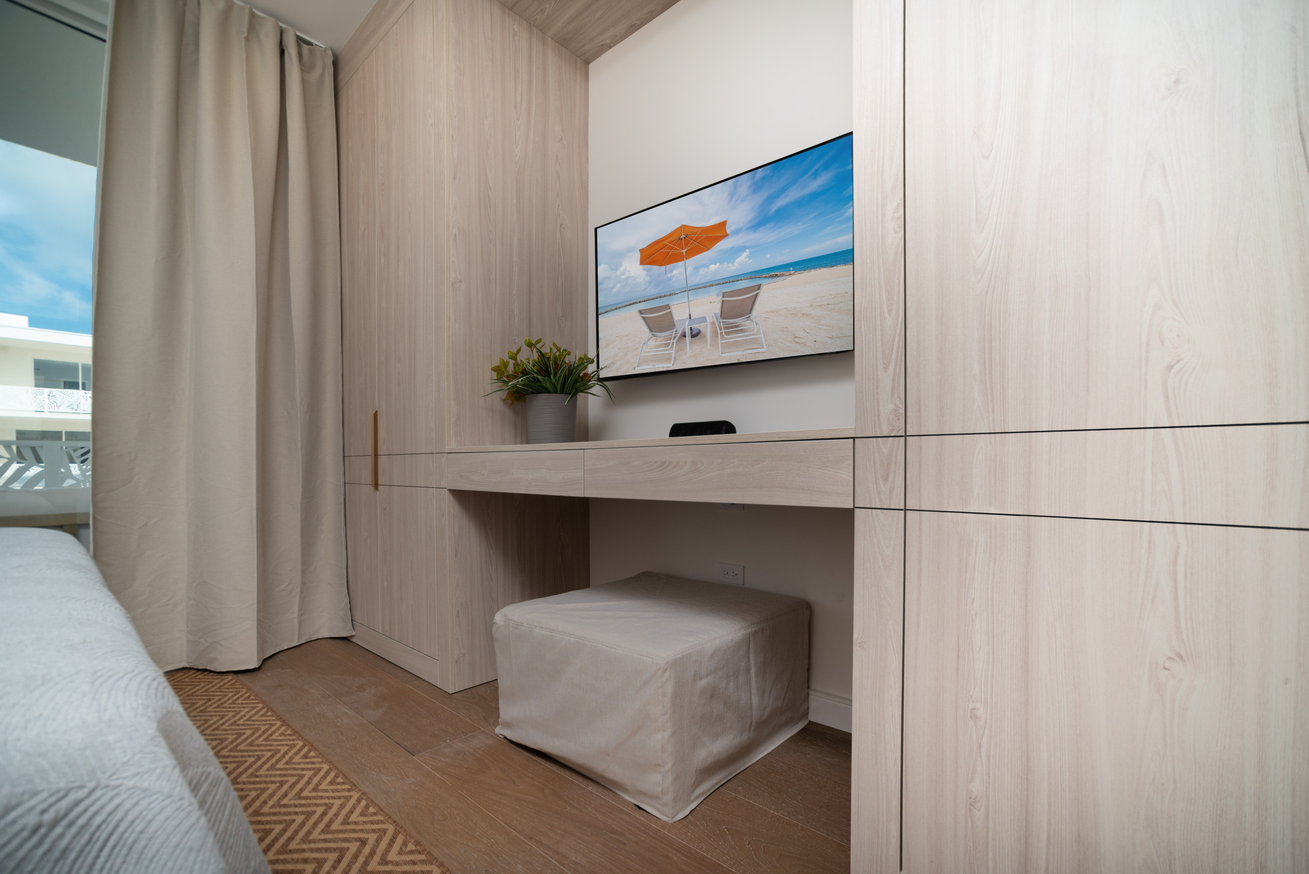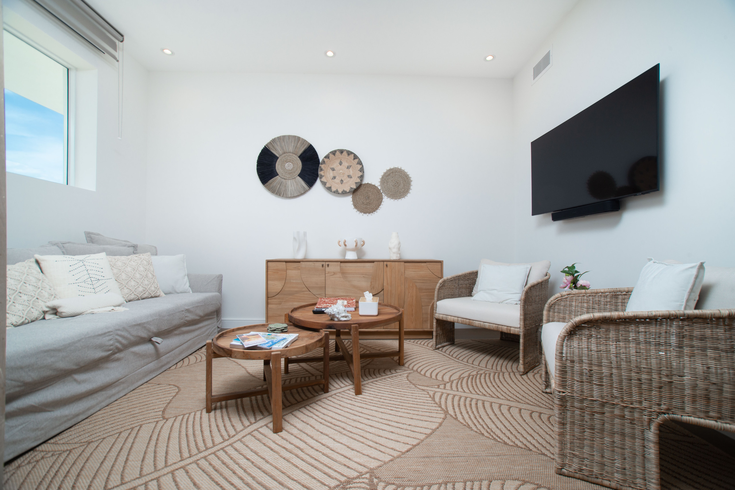 This modern apartment has been designed in collaboration with a Spanish interior designer, blending Mediterranean elegance with Caribbean charm to create a space that feels both sophisticated and effortlessly relaxed.