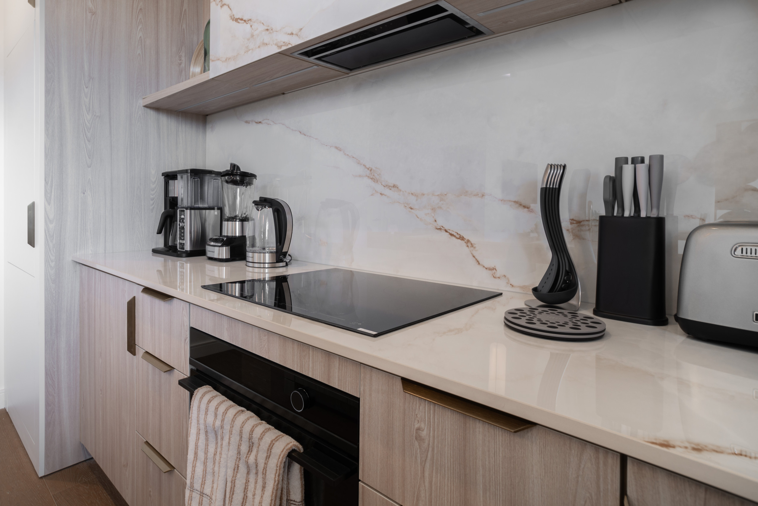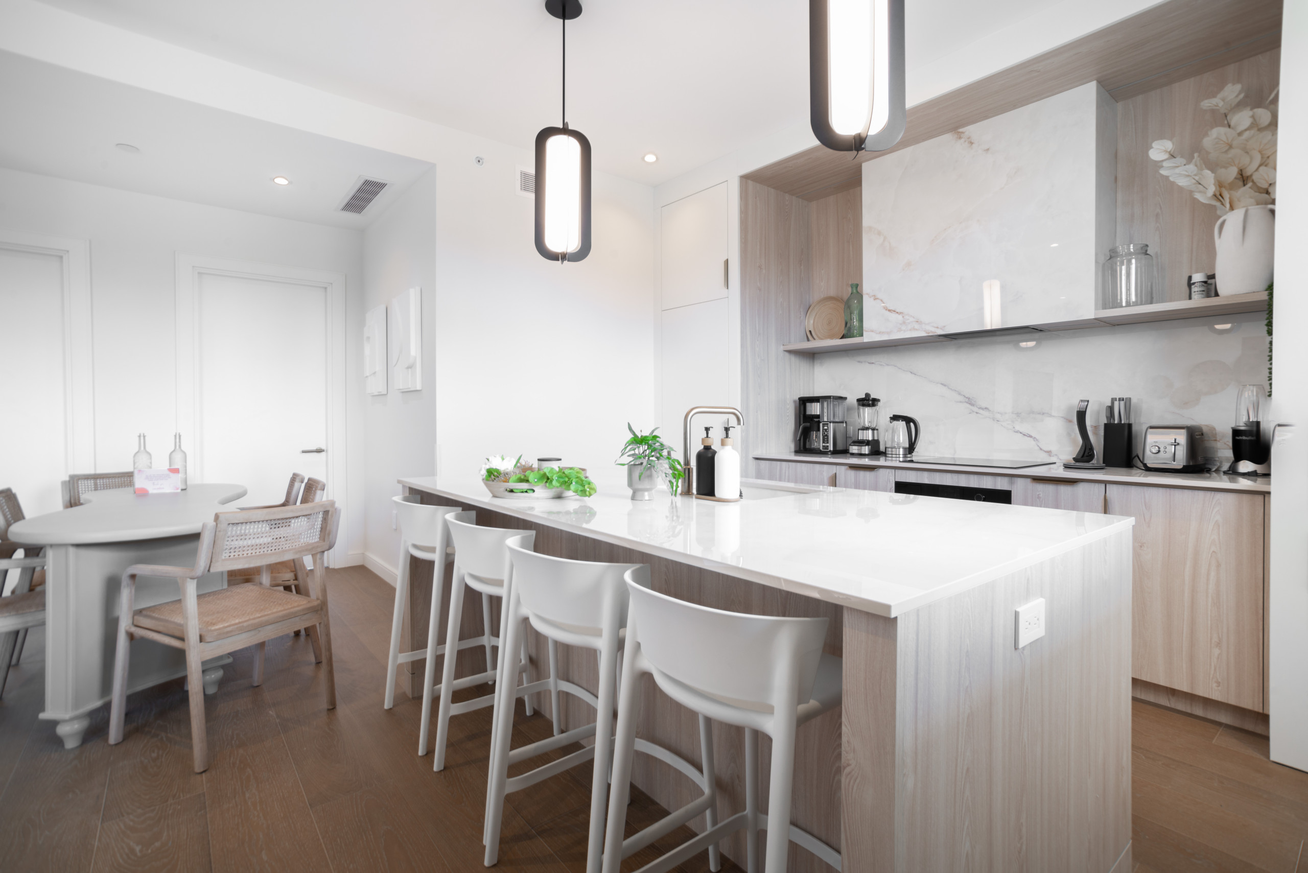 - Fully Equipped Kitchen: Outfitted with high-end appliances and premium essentials, the kitchen offers everything needed for stylish, easy everyday living - including a KitchenAid toaster, NutriBullet blender, electric kettle, Brita water filter, and Ninja specialty coffee maker.