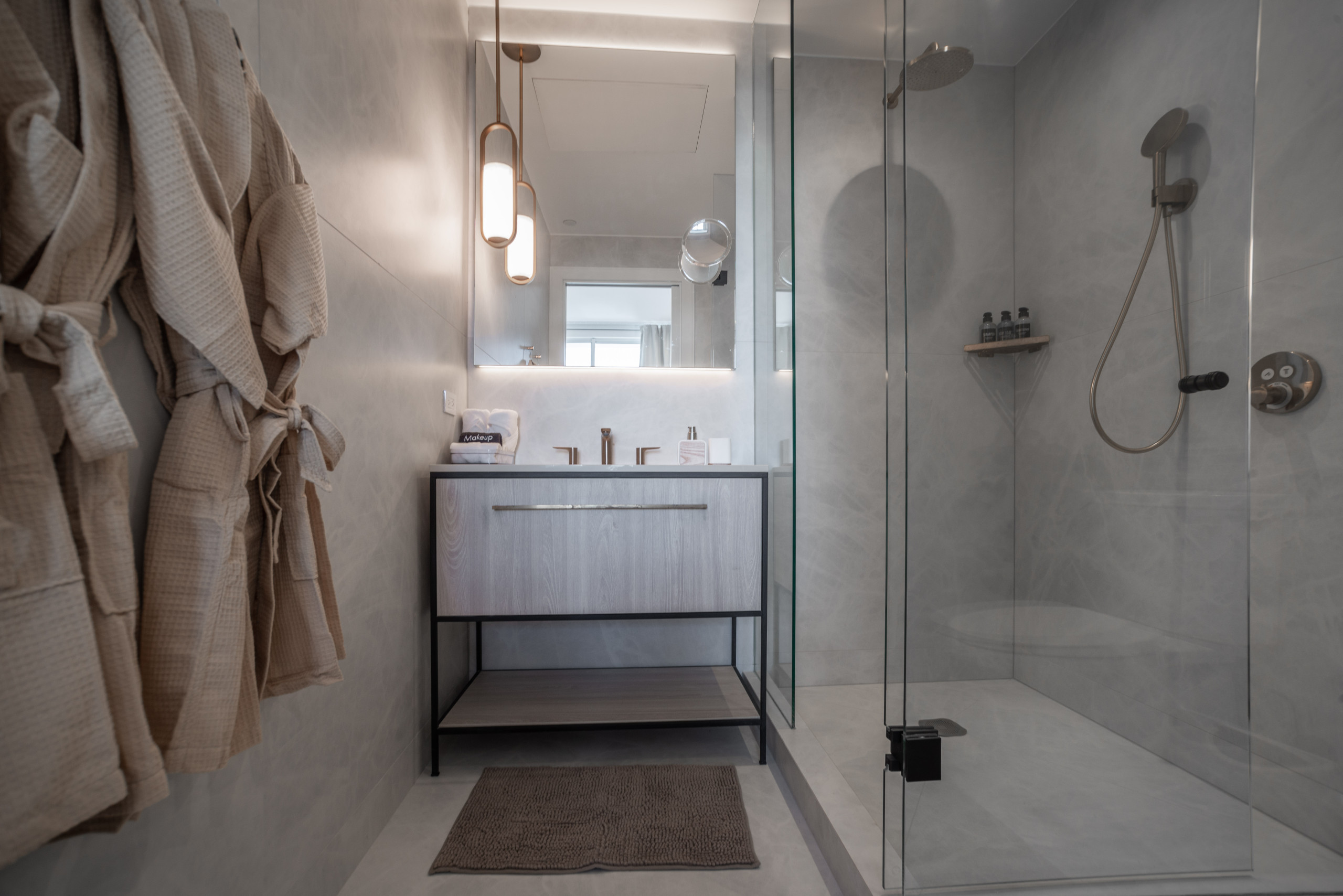- En-Suite Bathrooms: Elegant, spa-inspired spaces with walk-in glass showers, modern fixtures, and luxury bath amenities.