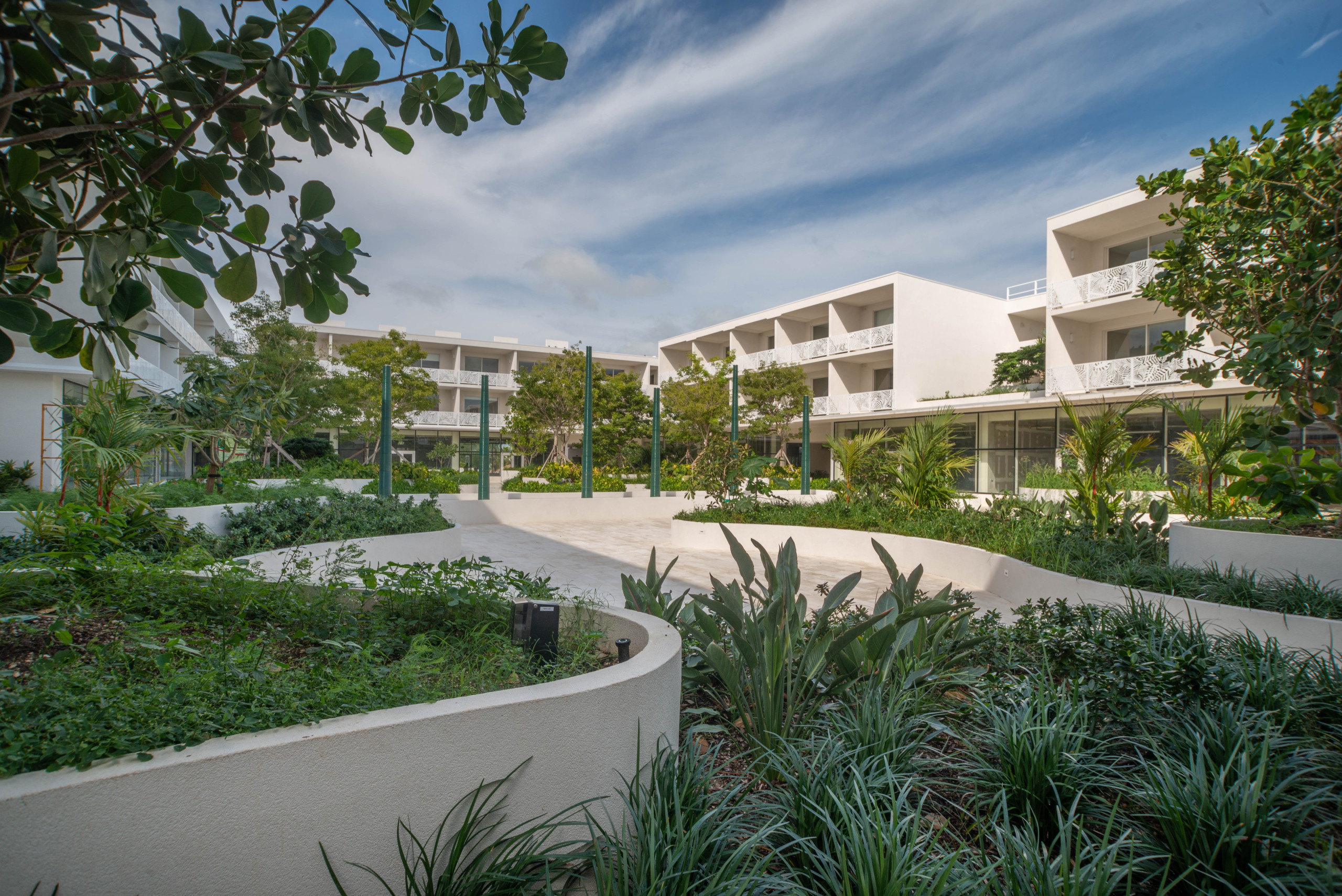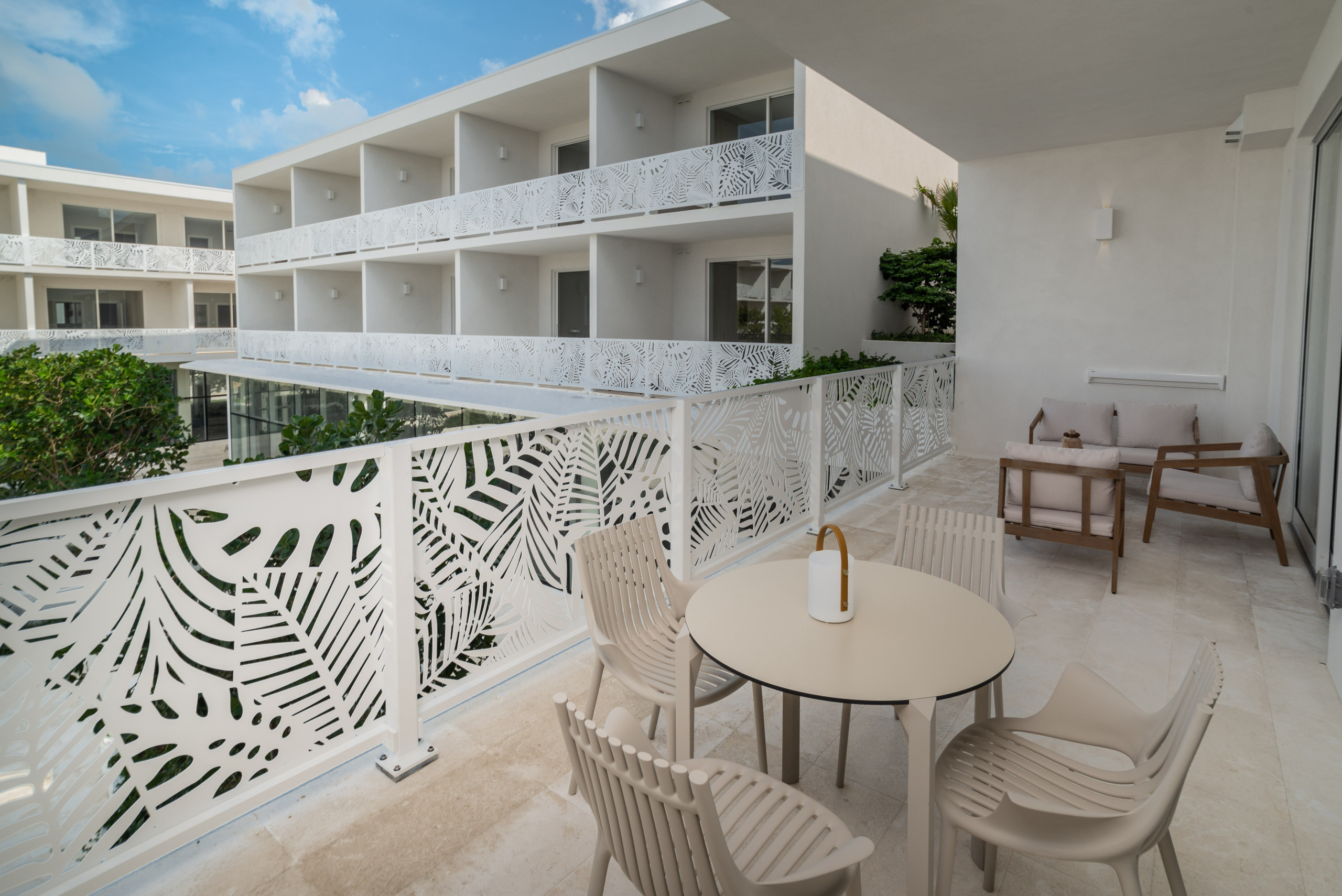 - Private Balcony: Enjoy serene views of the lush, half-acre courtyard garden, featuring tranquil water features, shaded seating, and vibrant tropical landscaping.